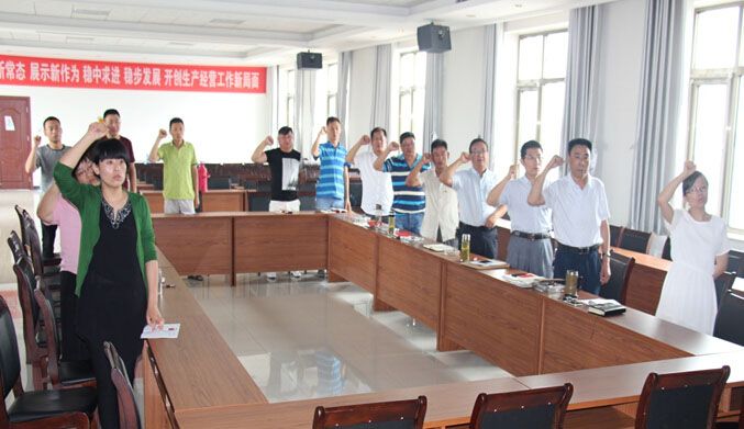 ▲公司黨支部組織全體黨員及入黨積極分子面向黨旗,莊嚴宣誓《入黨誓詞》。
