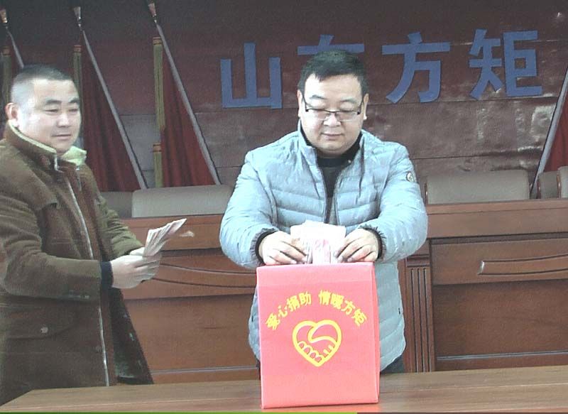山東方矩建筑安裝有限公司工程管理部主任尚傳柱同志,在公司工作二十多年來,工作勤勤懇懇,任勞任怨,嚴(yán)把工程質(zhì)量、安全生產(chǎn),對施工現(xiàn)場管理盡心盡責(zé),敢于擔(dān)當(dāng)。由于長期奔波在施工現(xiàn)場一線工作中,寒風(fēng)露宿,積勞成疾,造成強壯的體魄患上了椎間盤突出的疾病,2016年底病情再次加重,需前往北京手術(shù)治療,面對治療費用較大,經(jīng)濟負(fù)擔(dān)沉重。公司黨支部書記、董事長號召全體黨員和全體員工愛心募捐倡議,為尚傳柱同志募集資金,伸出援助之手,同時也向大安鎮(zhèn)工會組織申請了大病救助扶持救濟金。公司全體員工聞悉倡議,踴躍響應(yīng),盡己所能獻出愛心,廣泛倡導(dǎo)扶貧濟困的良好風(fēng)尚,發(fā)揚了團結(jié)友愛的精神,用實際行動唱響了愛的奉獻的主旋律。