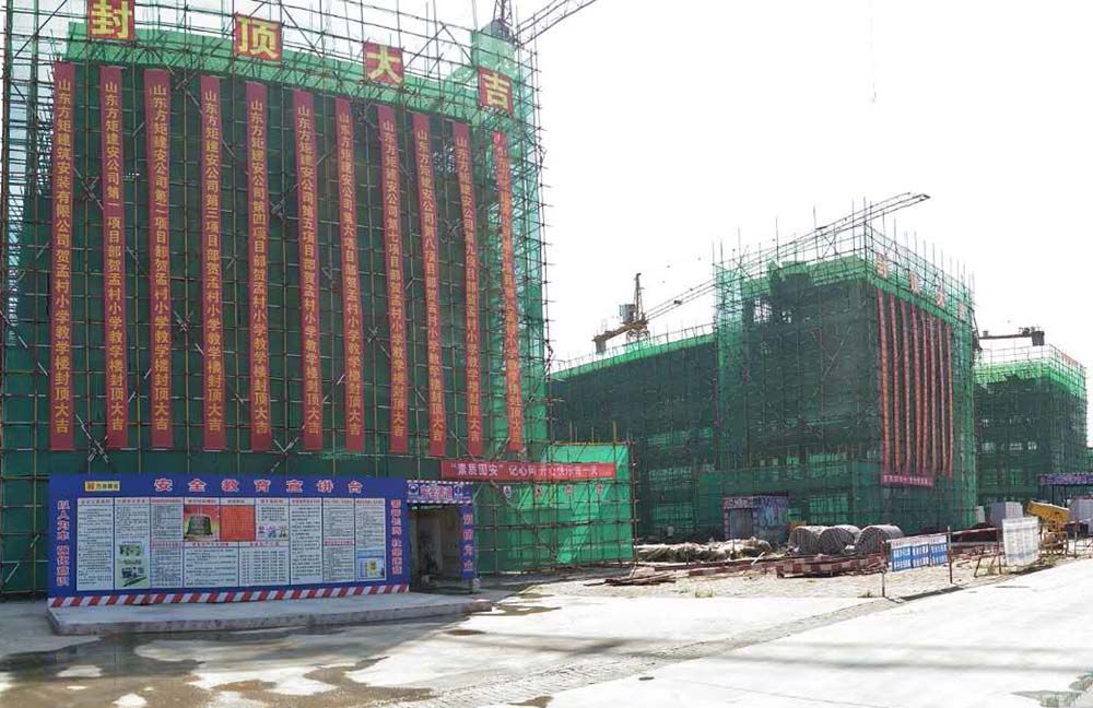兗州之美,源于創(chuàng)城,校園綻放,靚麗彩虹。在全國第33個教師節(jié)即將來臨之際,兗州區(qū)教育系統(tǒng)解決大班額問題的又一重點工程項目,于9月6日在濟寧市兗州區(qū)新兗鎮(zhèn)孟村小學(xué)新建教學(xué)樓工程又添一景,伴隨著建筑工人熱火朝天的干勁,主體屋面一斗混凝土合頂澆筑完成,施工現(xiàn)場呈現(xiàn)出紅幅高掛、彩旗飄揚,鞭炮聲聲傳喜訊,絲綢飄飄送佳音,標(biāo)志著山東方矩建筑安裝有限公司中標(biāo)承建的孟村小學(xué)教學(xué)樓工程,施工主體如期完成階段性的建設(shè)任務(wù),得到了兗州區(qū)教體局、新兗鎮(zhèn)教委和學(xué)校建設(shè)方的一致好評,獲得了區(qū)質(zhì)量、安全監(jiān)督管理部門和工程設(shè)計、施工監(jiān)理等有關(guān)單位的高度贊譽。