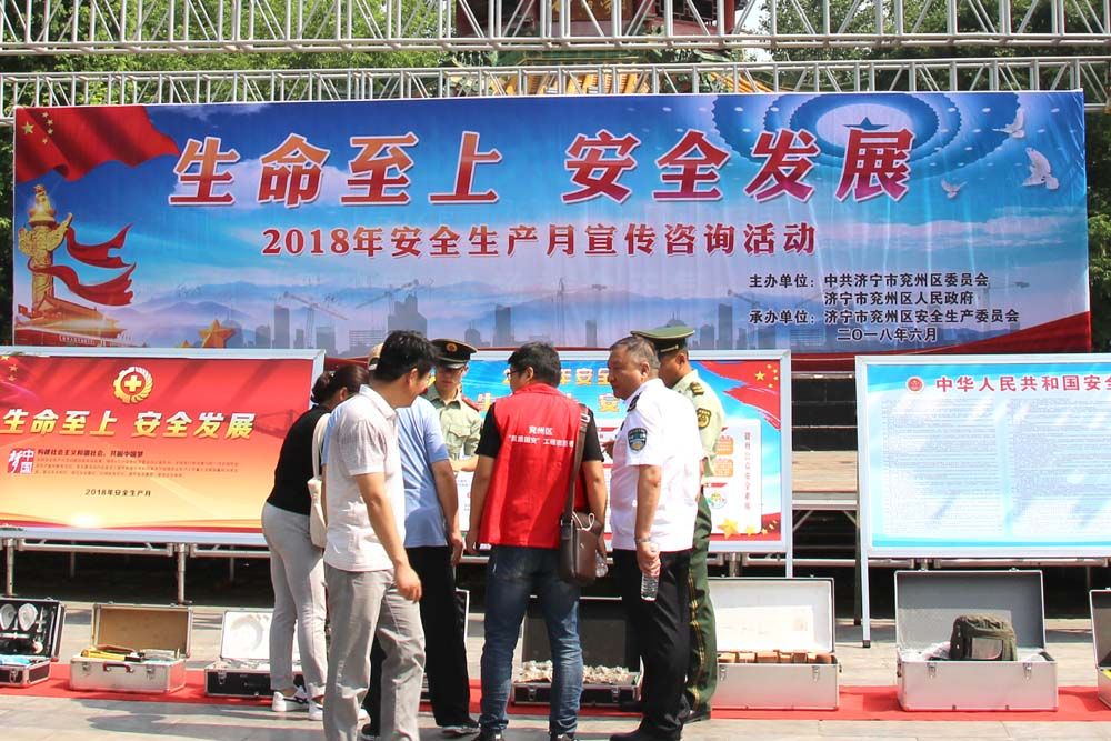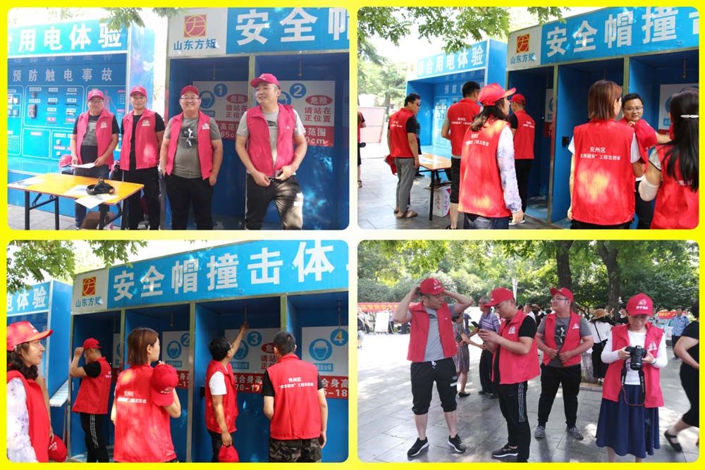 由我方矩公司代表兗州區(qū)住建局、建管處設置的建筑施工安全生產(chǎn)主場展示區(qū),公司專職安全生產(chǎn)管理員、機電設備管理員、環(huán)境整治防塵員等關(guān)鍵崗位人員,他們身穿紅馬甲、頭戴小紅帽,人人都是素質(zhì)固安的志愿者,個個都是關(guān)注安全、關(guān)愛健康的護衛(wèi)者,他們知識博深、技藝精湛、演練精準,具有良好的建筑安全專業(yè)技能,社會實踐經(jīng)驗豐富的建筑施工安全生產(chǎn)管理團隊,通過擺放建筑安全生產(chǎn)展示板、講解國家安全生產(chǎn)法律法規(guī)、分送《居家安全使用手冊》、發(fā)放安全生產(chǎn)體驗須知等居家使用、喜聞樂見、豐富多彩的安全生產(chǎn)法律法規(guī)和安全常識,向廣大人民群眾面對面的交流、心貼心的溝通,零距離的解答群眾關(guān)心的安全生產(chǎn)問題,營造了你所關(guān)心的,就是我們關(guān)注的尊重生命、尊重健康的活動氛圍,把安全科普知識和專業(yè)技能演練,成為主場展示區(qū)安全生產(chǎn)文化傳播的大舞臺。