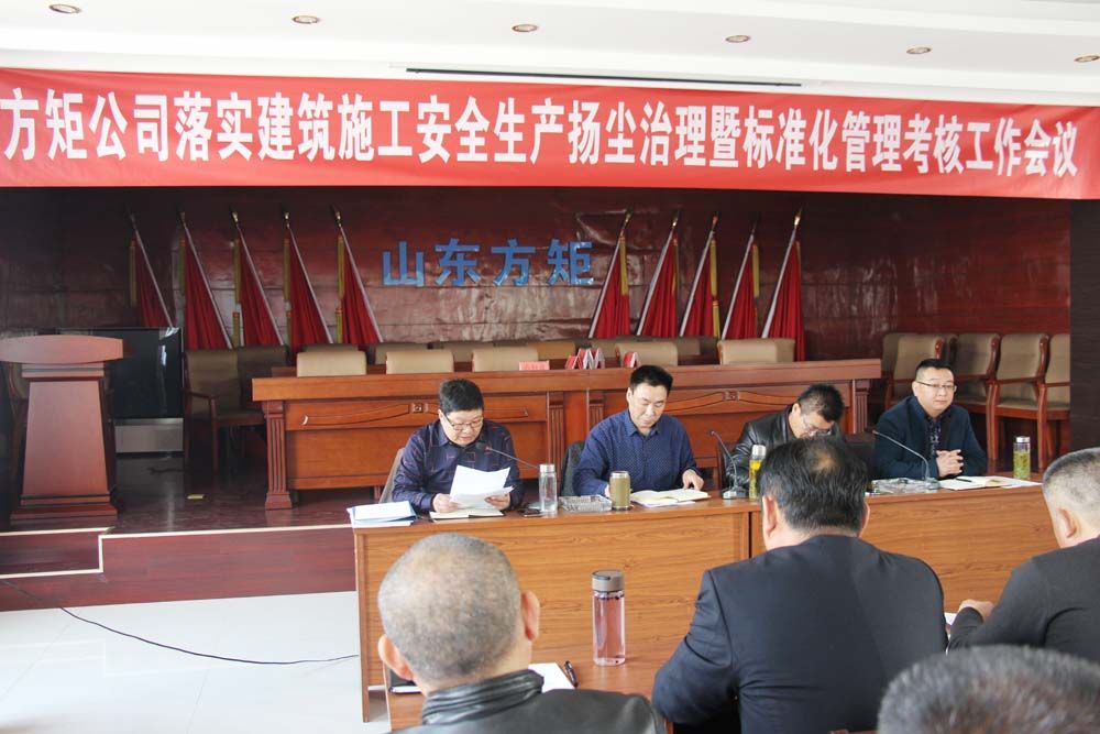 2017年3月10日,方矩公司組織召開了建筑施工安全生產(chǎn)揚(yáng)塵治理暨標(biāo)準(zhǔn)化管理考核工作會(huì)議。公司相關(guān)部室負(fù)責(zé)人、各在建工程項(xiàng)目經(jīng)理或施工負(fù)責(zé)人、安全員、質(zhì)檢員、施工員、資料員等專業(yè)崗位人員60余人參加了會(huì)議。