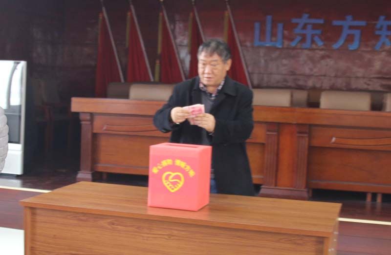 新年伊始,歲暮天寒。2016年12月31日上午9時,公司組織全體員工開展“愛心捐助,情暖方矩”為困難員工尚傳柱同志自愿捐助活動。公司黨支部書記、董事長尚衍慶同志帶領(lǐng)全體員工,紛紛慷慨解囊,積極踴躍捐款共計25600元。雖然天氣寒冷,大家確春意盎然,面對鮮艷的捐款箱,大家心情激動,伸出援助之手,助推扶困救助的正能量,真正體現(xiàn)了人間自有真情在,愛心捐款暖人心的情懷,弘揚方矩公司多年來做善事、行義舉的優(yōu)良傳統(tǒng),締造了全體員工人間大愛溫暖之情。