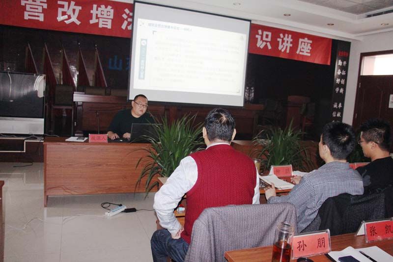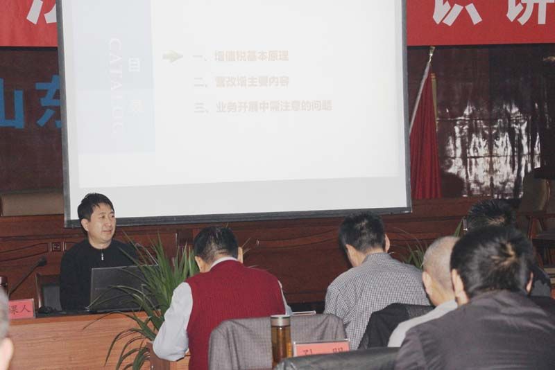 為更好地學(xué)習(xí)貫徹“營改增”納稅法規(guī)操作程序,依法規(guī)范納稅,依法維護(hù)公司利益,2017年1月7日上午8:30,我公司特邀請(qǐng)濟(jì)寧市兗州區(qū)國稅局政策法規(guī)科科長吳建光、稅源科科長尚汝寬兩位專家,在公司會(huì)議室就“營改增”法律法規(guī)知識(shí)作專題培訓(xùn)。公司董事長、黨支部書記尚衍慶同志出席培訓(xùn)活動(dòng),本次會(huì)議由公司副經(jīng)理柳朋同志主持,公司總經(jīng)理、副經(jīng)理、項(xiàng)目部經(jīng)理及財(cái)務(wù)、造價(jià)等相關(guān)人員參加了培訓(xùn)。