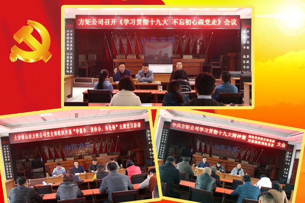 新時代催生新思想,新理論新實踐。黨的十九大召開后,中共山東方矩建筑安裝有限公司黨支部迅速掀起學習十九大的熱潮,自覺把學習的思想和行動統(tǒng)一到黨的十九大精神上來,通過收聽收看十九大開幕盛況和區(qū)、鎮(zhèn)委組織學習黨的十九大精神宣講報告會,公司黨支部書記尚衍慶同志給全體黨員上黨課,集體誦讀學習十九大報告和新黨章,學習討論十九大內(nèi)涵,把十九大精神的學習宣傳貫徹工作做得有聲有色,學習報告內(nèi)涵學得入心入腦,接地生根、開花結(jié)果。