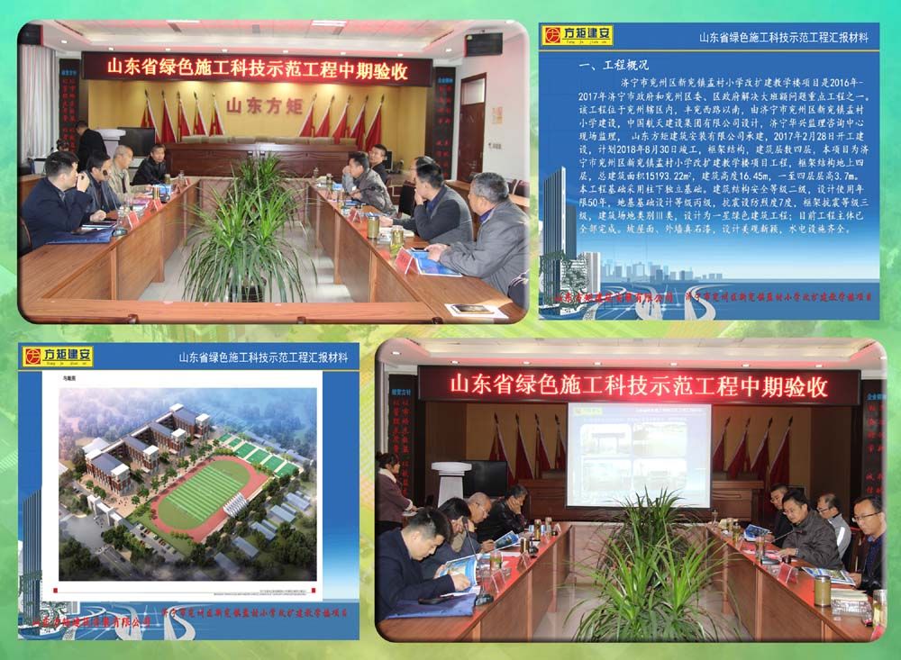為加快推進新舊動能轉換產(chǎn)業(yè)升級,大力推廣綠色建筑施工建造模式,推動省級綠色施工科技示范項目建設再上新臺階。近日,山東方矩建筑安裝有限公司承建施工的兗州區(qū)新兗鎮(zhèn)孟村小學改擴建教學樓工程,順利通過山東省綠色施工科技示范工程中期驗收,為濟寧市兗州區(qū)建設領域推廣綠色施工科技示范工程增光添彩!為公司創(chuàng)建綠色施工科技示范工程樹立標桿!